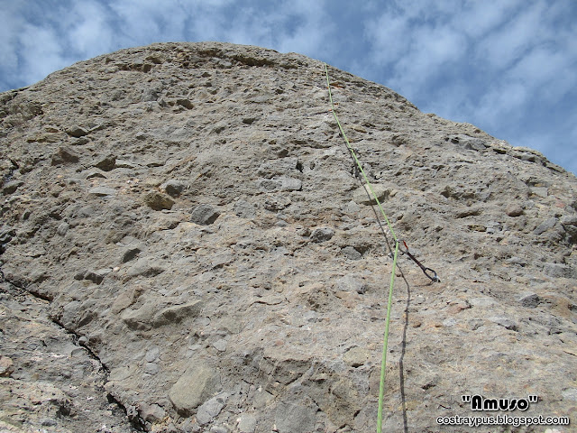 concentra en un pequeño muro vertical de pequeñas presas en el segundo largo.